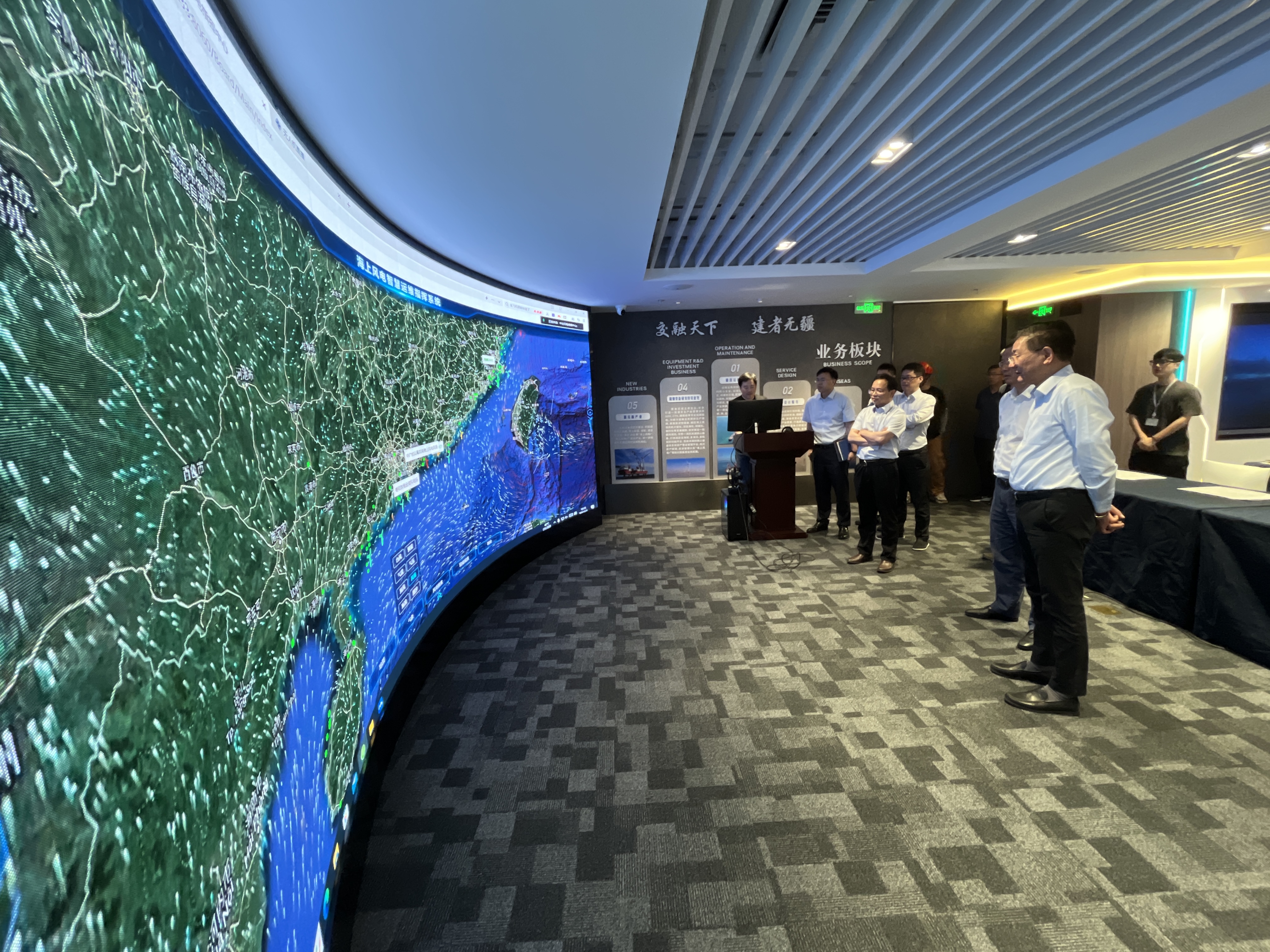 智慧运维指挥中心是集生产调度、安全监管、实时监控、远程指挥、台风预警、锚地避风等多功能为一体的指挥调度平台,同时具有智能对讲、智慧巡检、技术演示、VR培训等创新功能,进一步增强公司对项目现场的安全管控与作业监督。