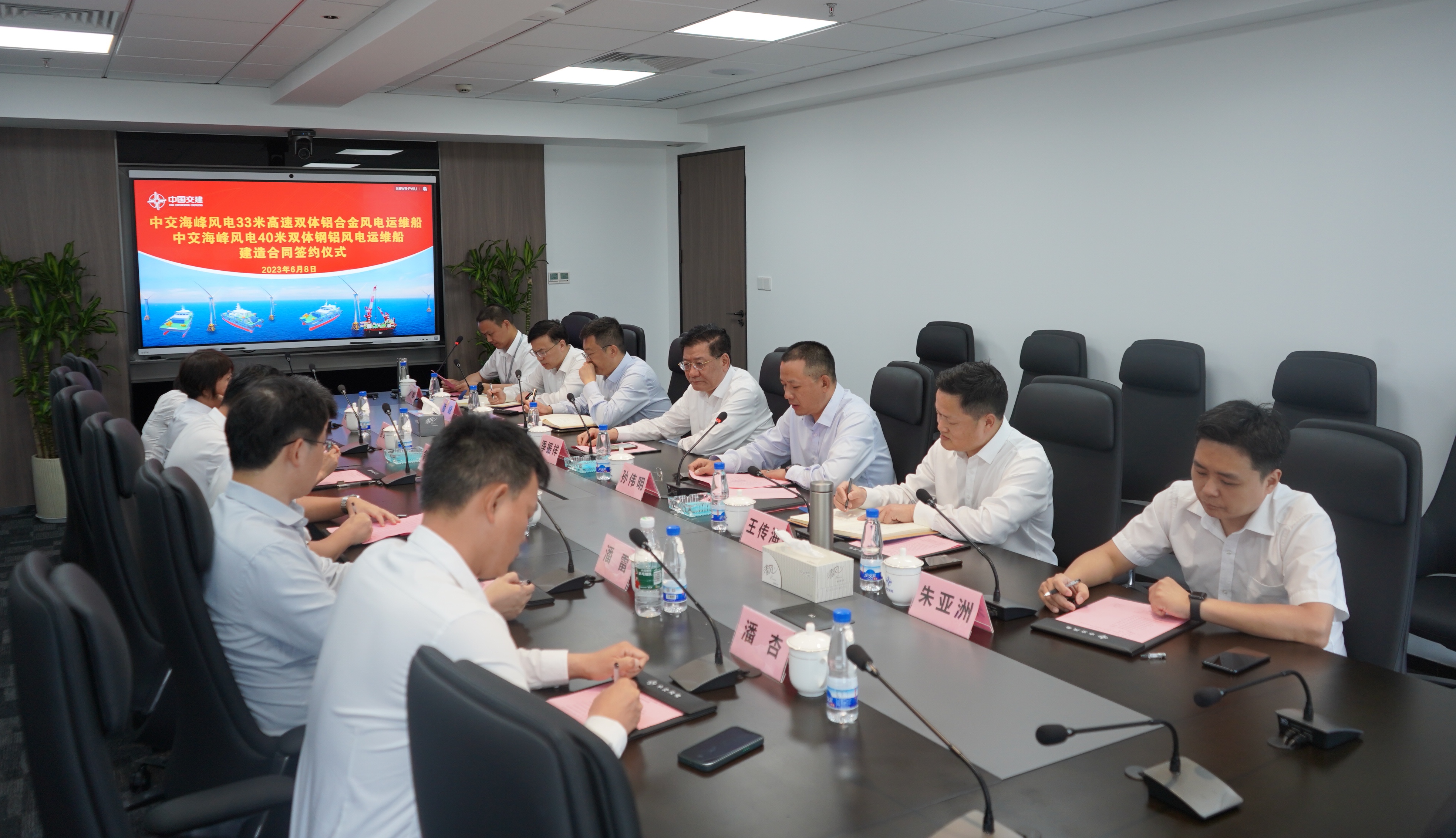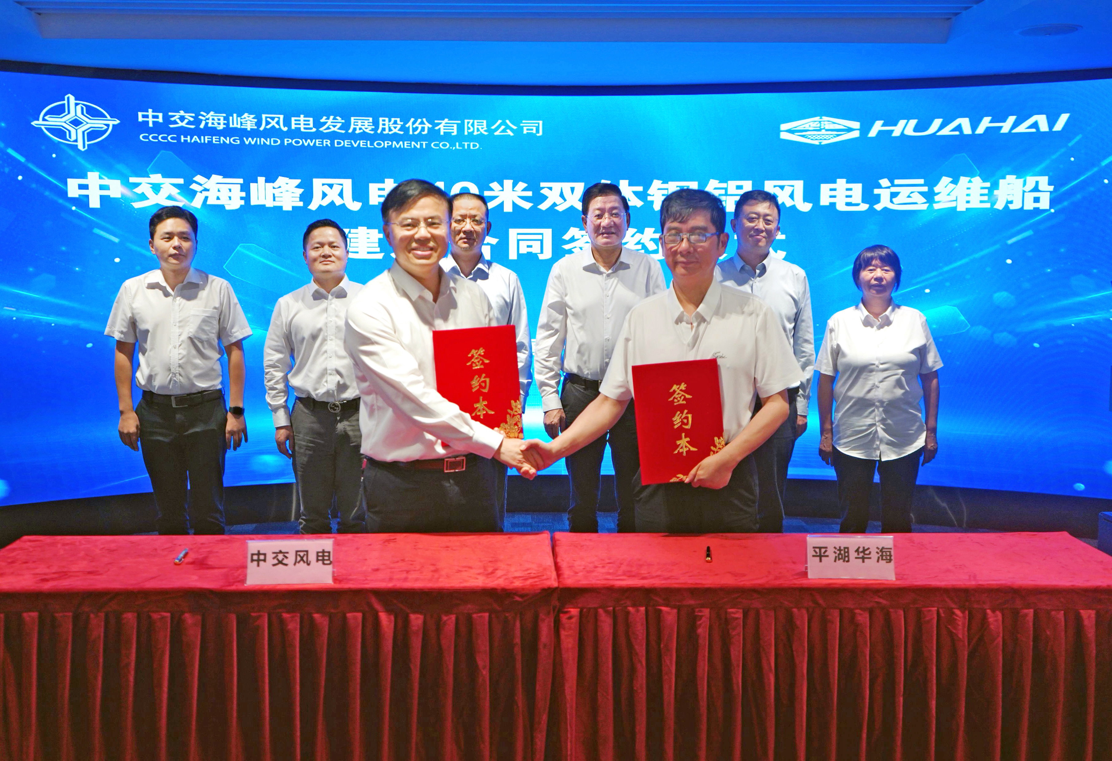 6月8日,伟德国际1946源于英国发展股份有限公司分别与澳龙船艇科技有限公司和平湖市华海造船有限公司在上海举行公司5000系列风电运维船建造合同签约仪式。公司党委书记、董事长季振祥,党委副书记、总经理孙伟明,澳龙船艇总经理王广荣,平湖华海总经理俞东旭共同出席仪式,并进行座谈交流。