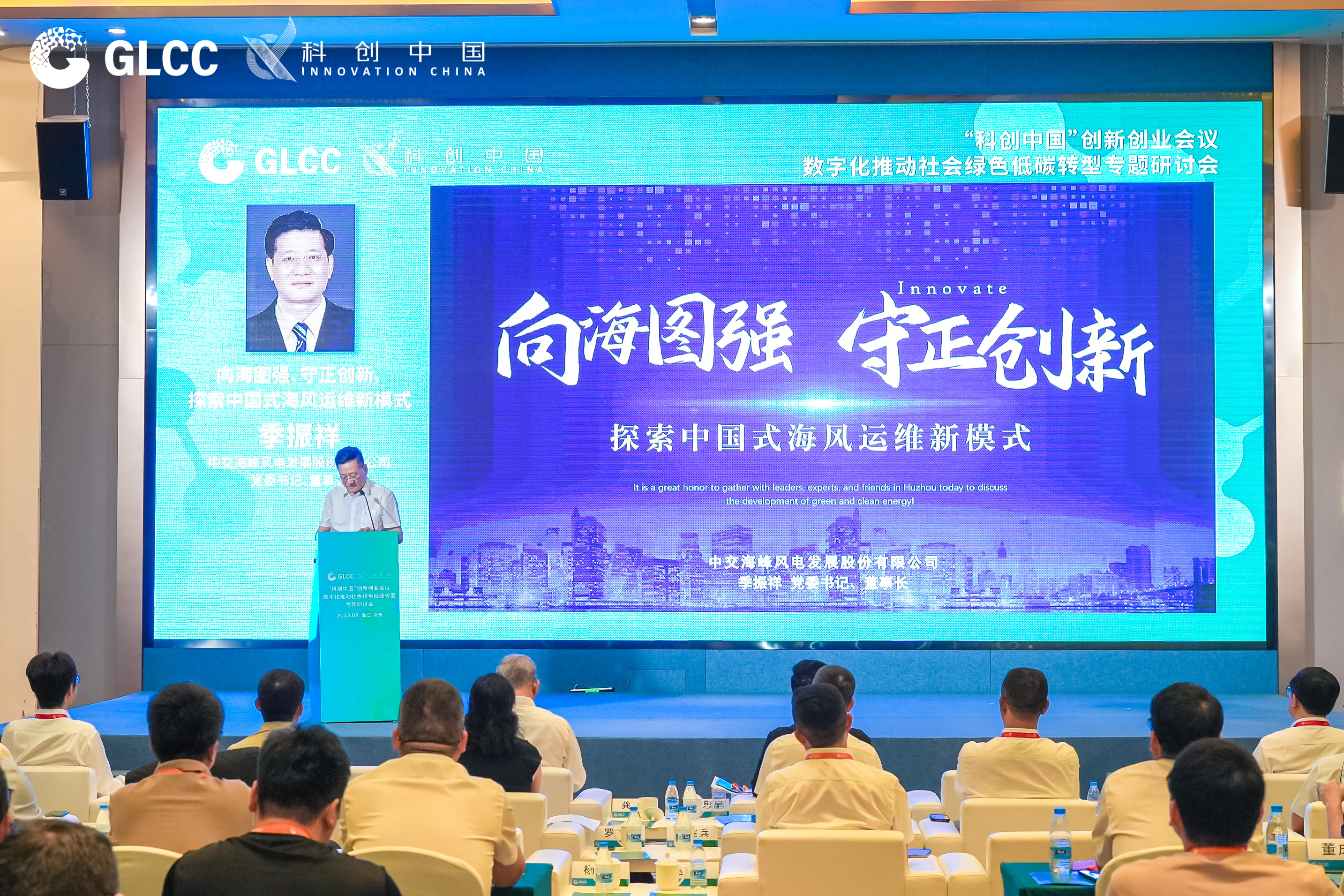 8月16日,季振祥出席分论坛“数字化推动社会绿色低碳转型专题研讨会”,以《向海图强、守正创新,探索中国式海上风电运维新模式》为题作主题演讲。