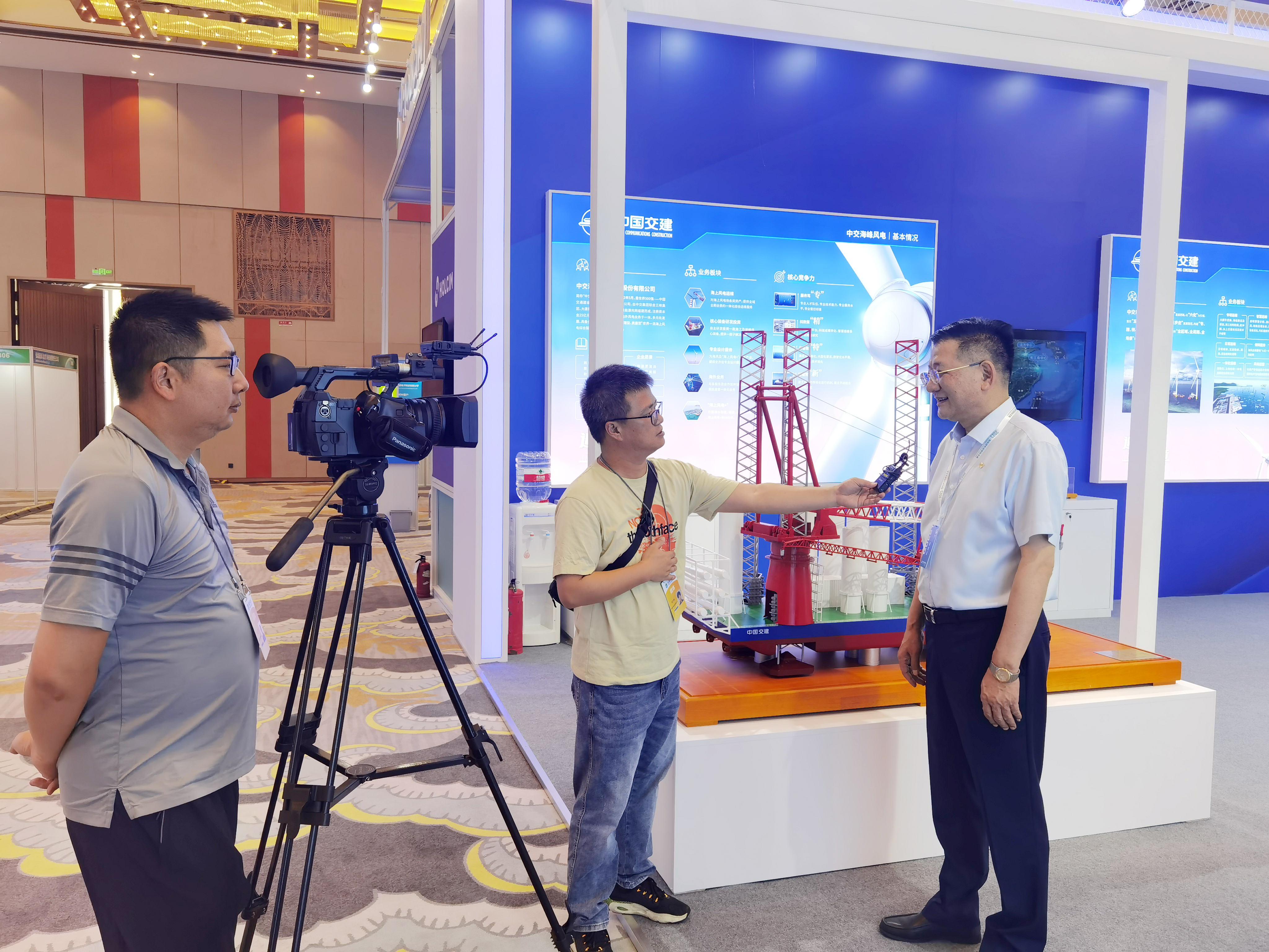 中央广播电视总台《焦点访谈》栏目组走进公司展区,就公司海风运维业务与装备研发制造对季振祥进行采访,展示出公司在海上风电和绿色低碳方面的央企担当。