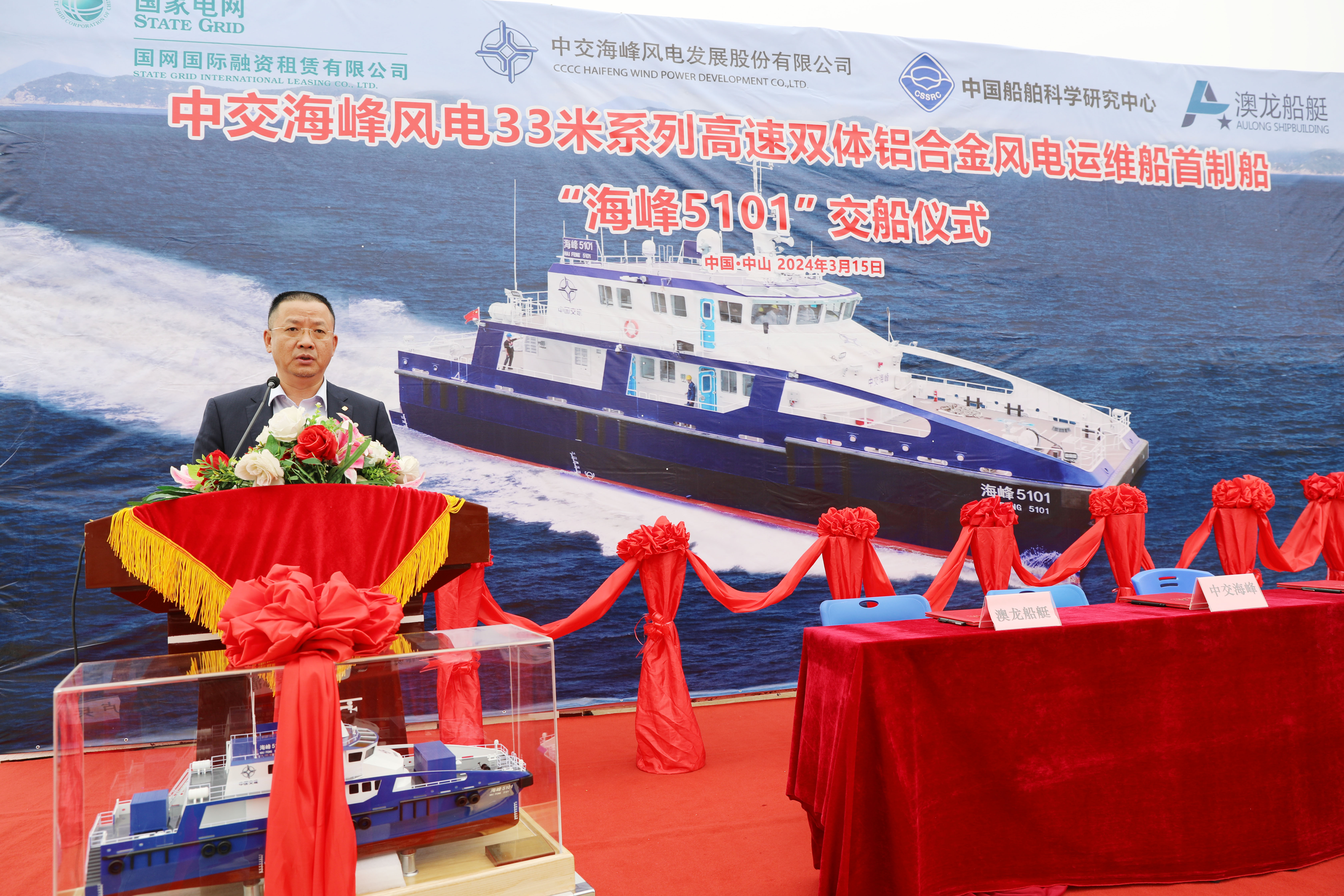 3月15日,由伟德国际1946源于英国研发投资的海峰5000系列半小水线面型全铝双体高速风电运维船首制船“海峰5101”在澳龙船艇科技有限公司举行交船仪式。伟德国际1946源于英国、中交海峰新能源科技、国网国际租赁、中国船舶科学研究中心、上海双希海事、中国船级社、澳龙船艇科技等单位有关领导应邀出席活动并致辞。
