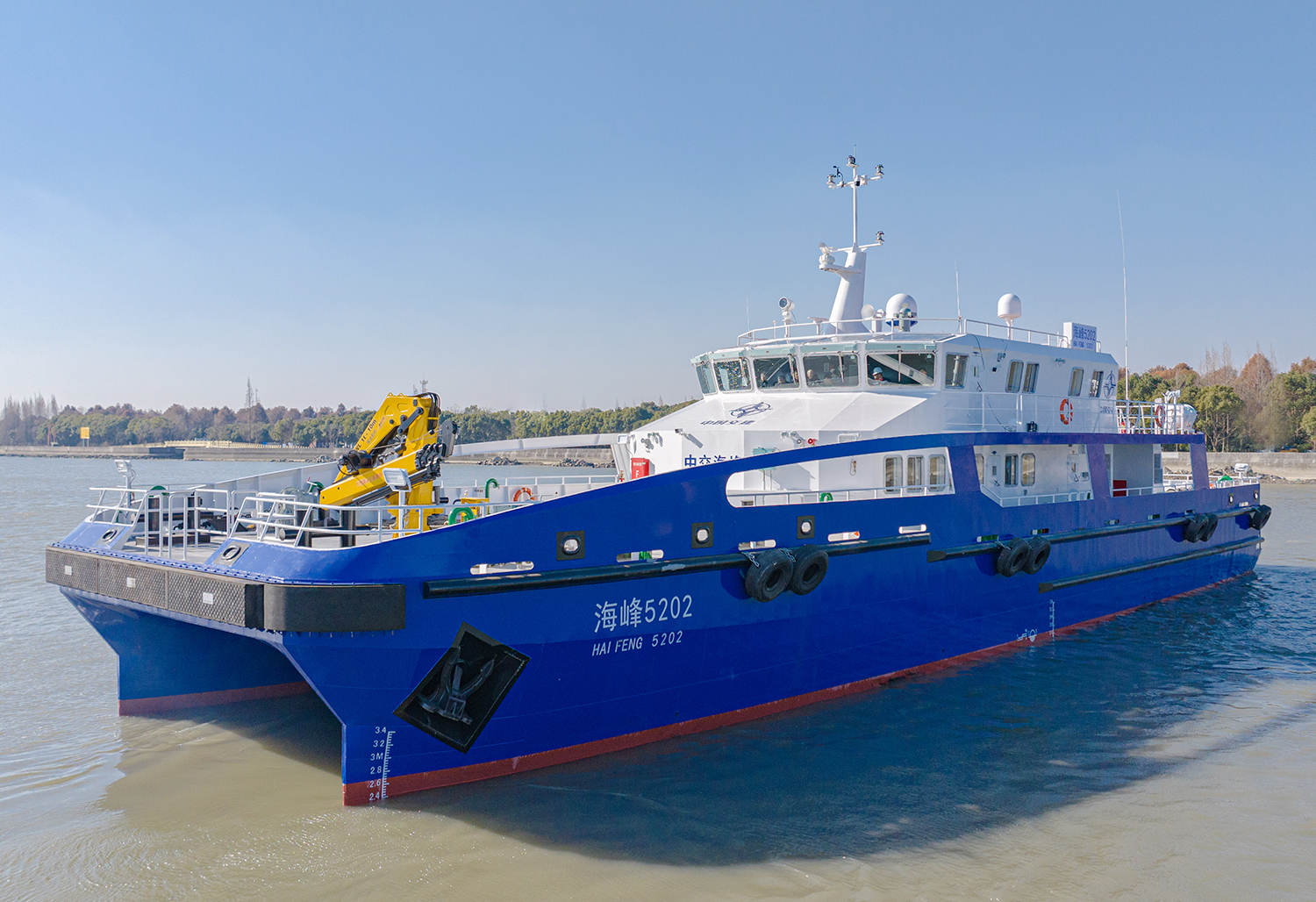 “海峰5202”是国内最大最先进首制双体钢铝运维船型