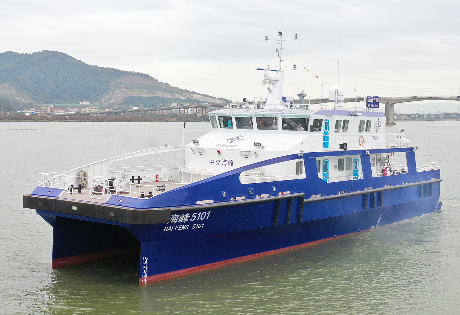 “海峰5101”是国内首制双体半小水线面全铝风电运维船型