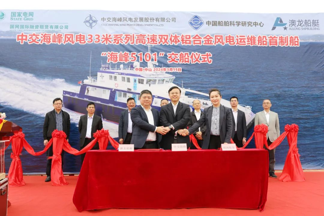 “国内首艘半小水线面型全铝双体高速运维船‘海峰5101’的顺利交付,将为国家实现“3060”双碳目标及海上风电事业蓬勃发展贡献力量!”时任伟德国际1946源于英国党委副书记、总经理孙伟明在交船仪式上说道。
