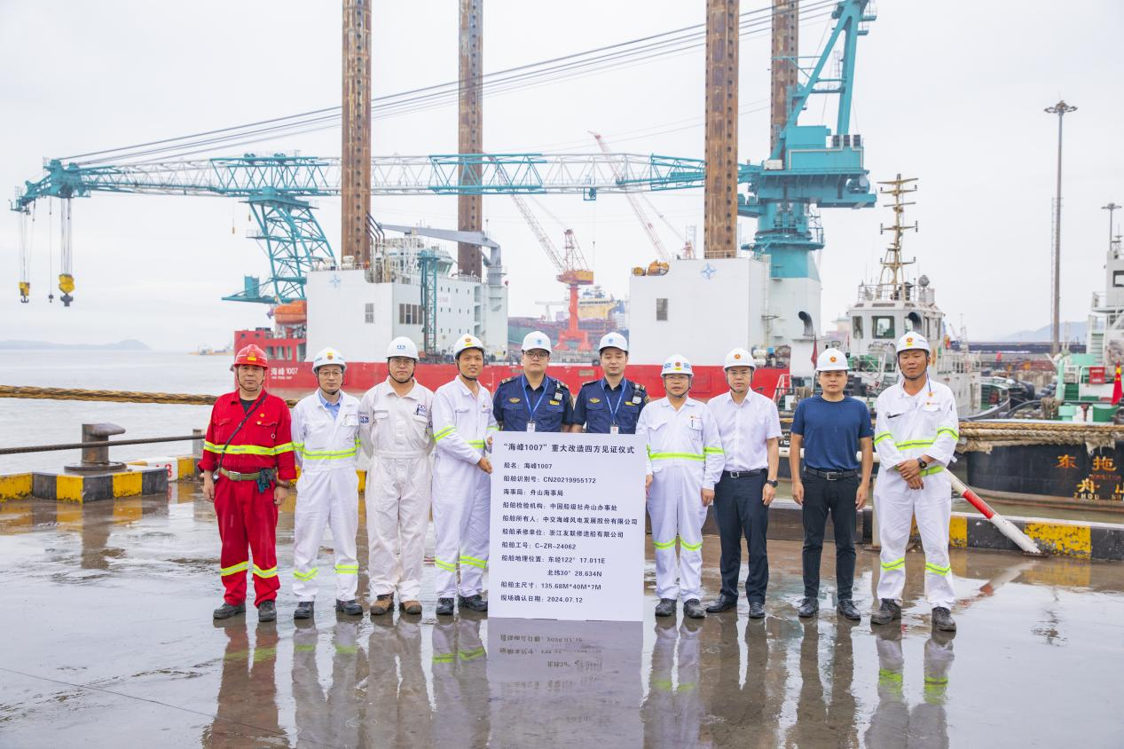 7月12日,公司“海峰1007”风电平台船重大改造项目在浙江友联船厂举行四方见证开工仪式。伟德国际1946源于英国、浙江友联船厂、舟山海事局、CCS舟山分社四方代表共同参加仪式,标志该平台船于6月份完成中间检验后正式转入重大改造现场施工阶段。