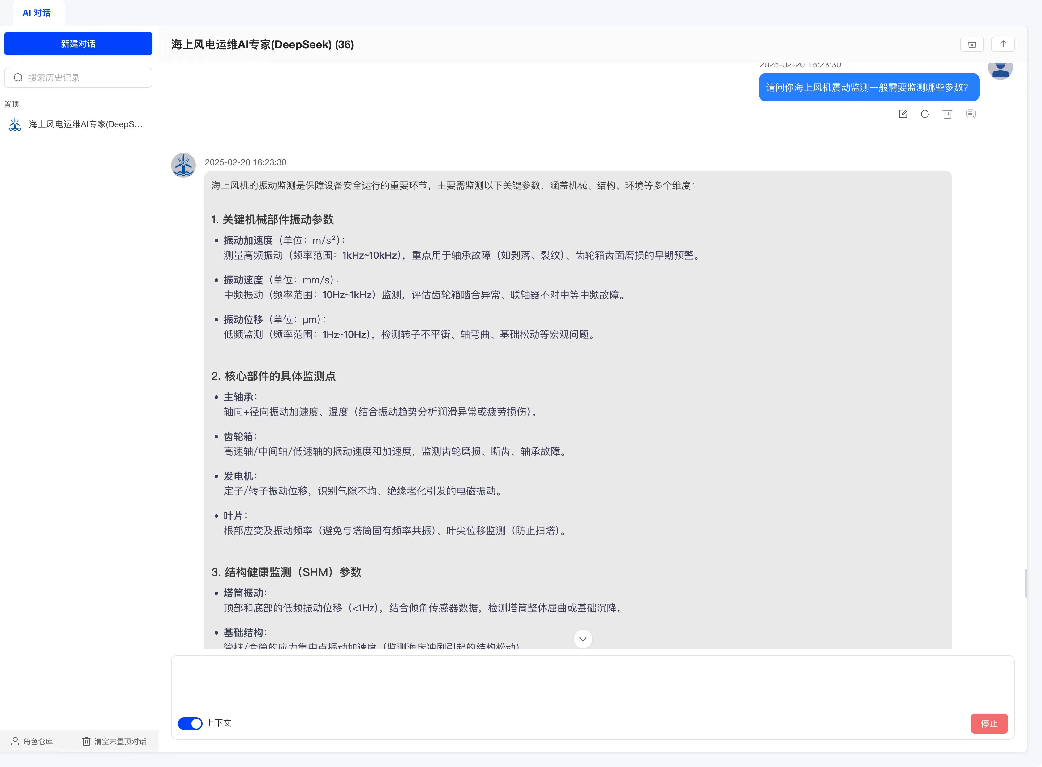升级后的智慧运维平台海上风电运维AI专家系统,构建了覆盖风机运维多专业、多学科的专业知识库,具备AI对话、AI思维导图等功能。系统能够处理更复杂的语义理解和知识推理任务,为用户提供更精准、更全面的解答,可高效完成风电运维知识检索、运维方案辅助生成等任务。
