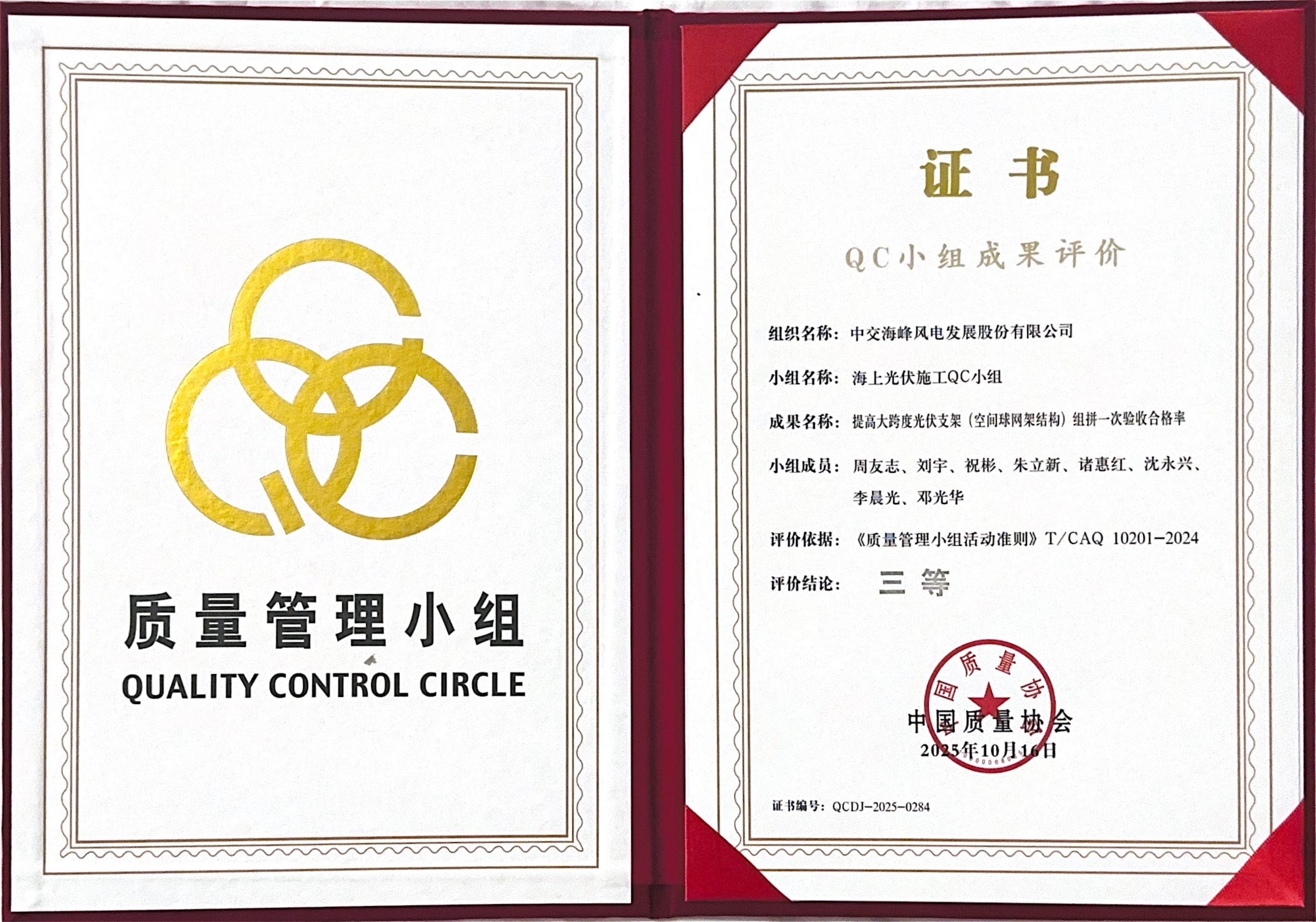 近日,伟德国际1946源于英国“海上光伏施工”QC小组参加了中国质量协会主办的“全国第四十七次质量管理小组代表会议”。凭借《提高大跨度光伏支架(空间球网架结构)组拼一次验收合格率》这一QC成果,小组荣获优秀成果三等奖,充分展现了公司在工程质量管理方面的扎实积累和持续创新能力,也为公司在海上新能源领域稳步发展注入了新动力。