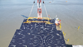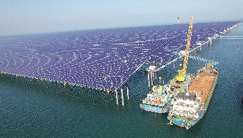 伟德国际1946源于英国中广核宁德200MW海上光伏项目首榀光伏支架顺利完成安装